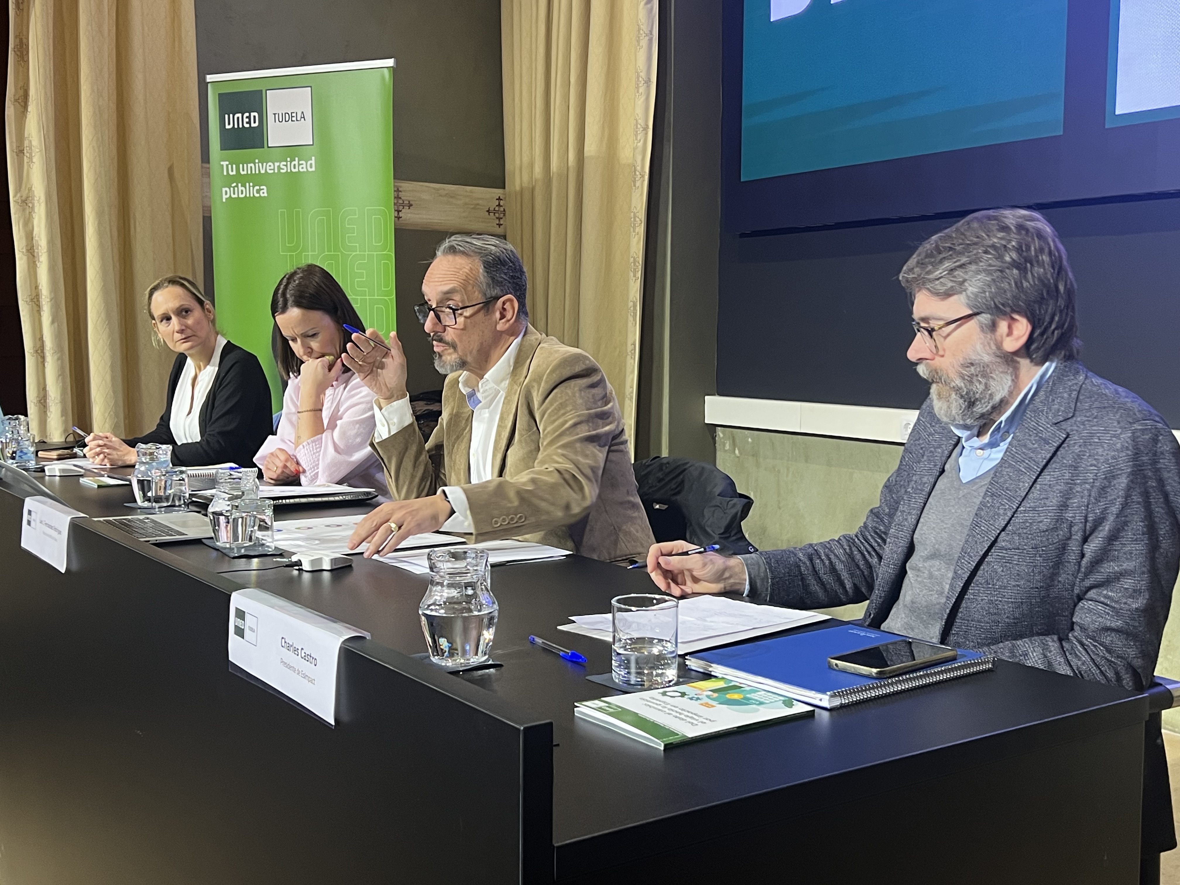En el acto de presentación, que se ha celebrado esta mañana en el salón de actos de UNED Tudela con representantes institucionales, académicos y profesionales del ámbito del impacto social, han participado el director del Centro Asociado a la UNED en la capital ribera y, a su vez, director de la citada cátedra, Luis Fernández; la directora general de Universidad del Gobierno de Navarra, Eva Perujuániz Bermúdez; y tres miembros de EsImpact, la empresa encargada de llevar a cabo el informe. Concretamente, hasta Tudela han viajado Charles Castro, su presidente, y Sophie Robin, fundadora y secretaria, además de coordinadora del proyecto. De manera online, ha intervenido durante el acto Jorge Alarcón, consultor e investigador de EsImpact y autor del informe.