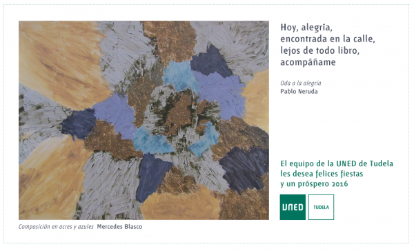 La UNED de Tudela desea unas Felices Fiestas y un Próspero 2016 a la comunidad universitaria y público en general