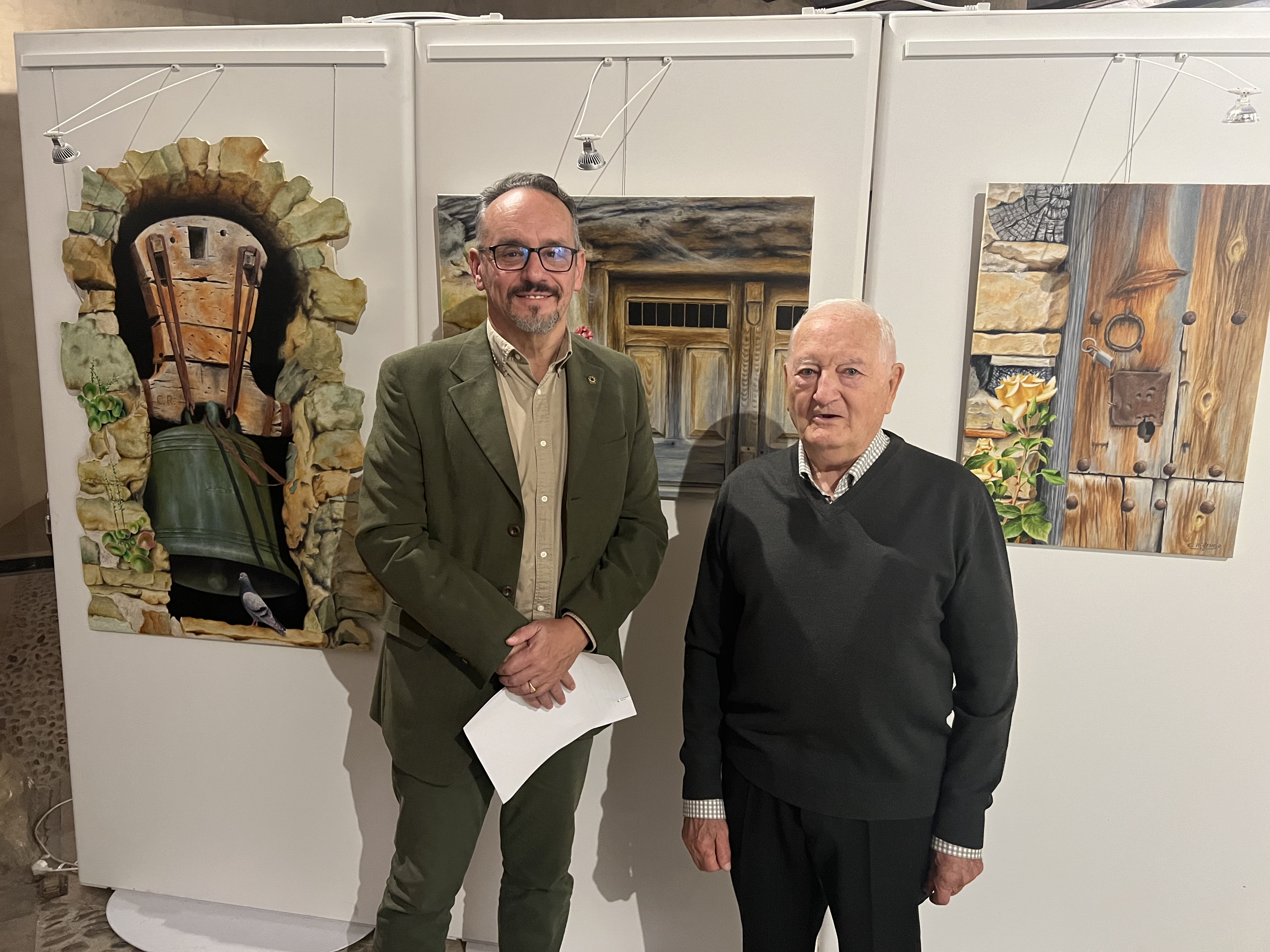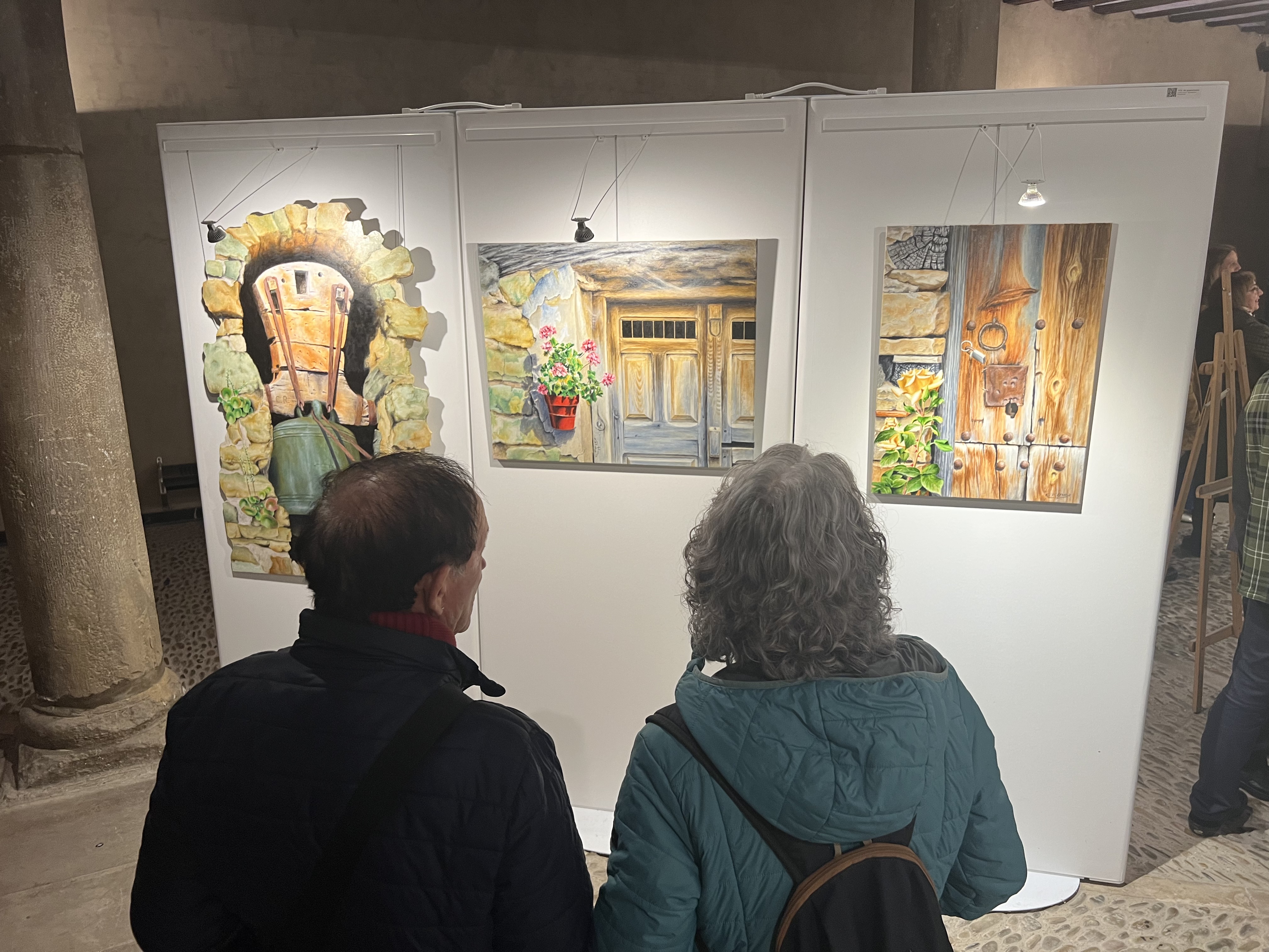 En su bagaje artístico, figuran 17 exposiciones, una de las cuales se celebró también en UNED Tudela. Fue hace diez años y la muestra, titulada Fuentes y vida, constituía una oda a los pueblos pequeños, como el que lo vio nacer en Soria, con sus costumbres y su artesanía popular. De hecho, muchos de sus cuadros son recuerdos de esos pueblos, además de flores, bodegones, azulejos, frutas, retratos y, como se ha dicho ya, los residuos seculares de la comarca soriana de las Tierras Altas.