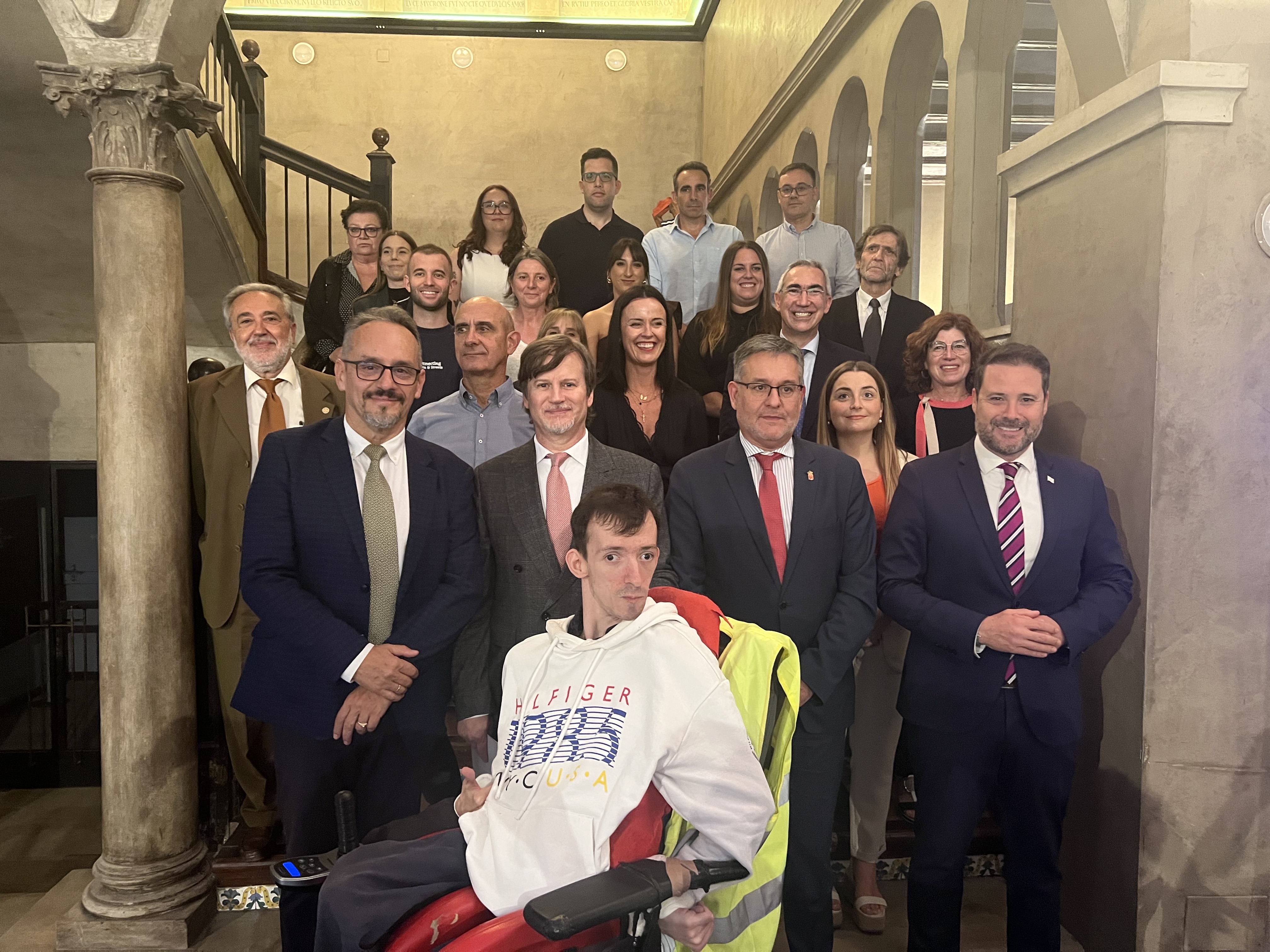 La habitual fotografía de familia de miembros de UNED Tudela, representantes de instituciones y estudiantes en la escalera del Palacio del Marqués de San Adrián ha marcado el final del acto de apertura del curso académico 2025-2026.